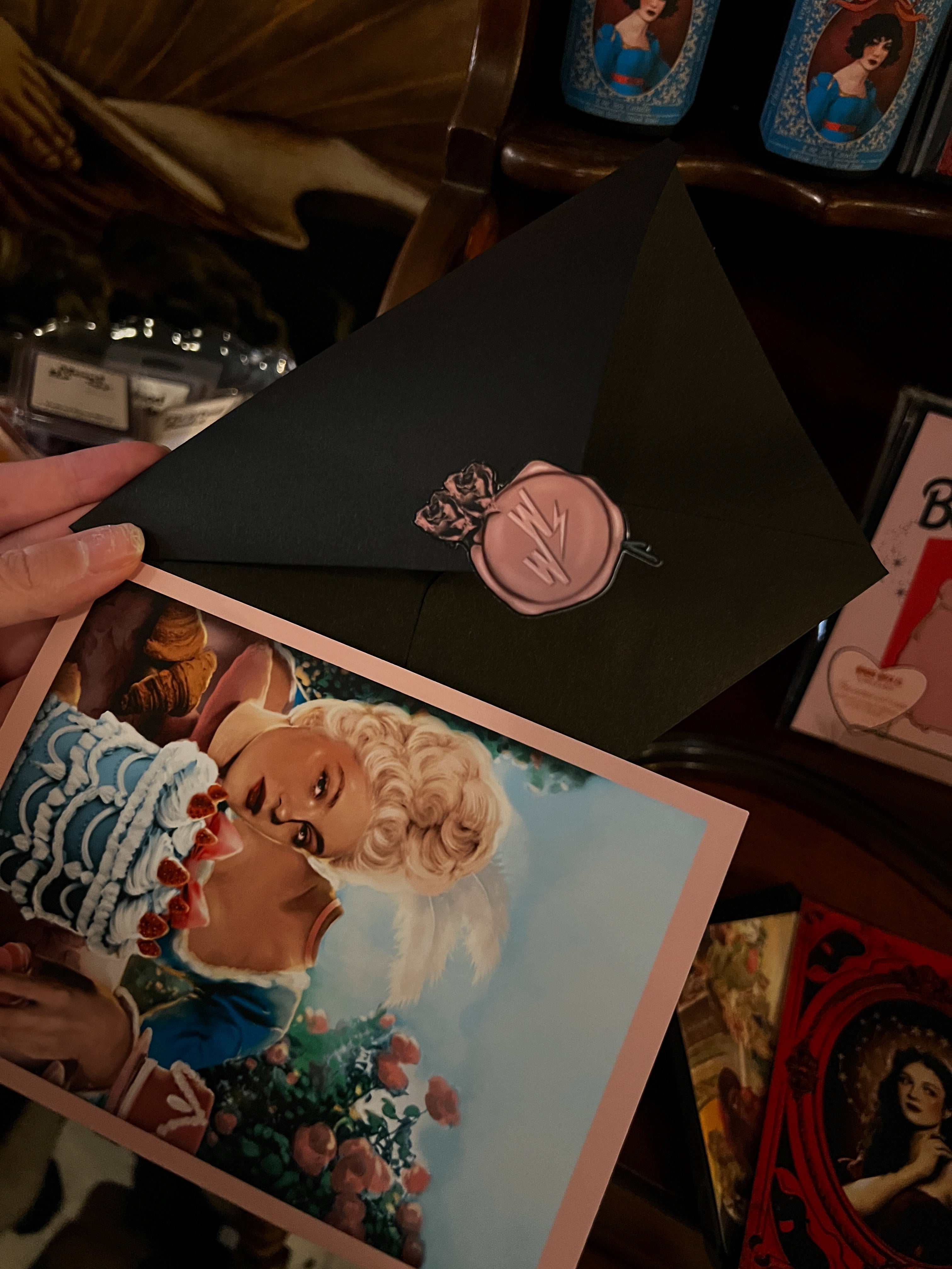 The 5x7 size and layout is made for framing after gifting. Each card comes with a classic art lined black envelope and coordinating seal sticker.