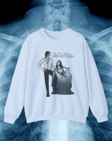 Our rock parody of the creature and Elizabeth on soft and cozy crewnecks. The perfect pull over for a chilly day or book shopping.